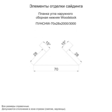 Планка угла наружного сборная нижняя Woodstock 70х28х3000 NormanMP (ПЭ-01-1014-0.5)
