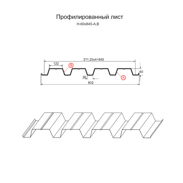 Профилированный лист Н-60x845-A